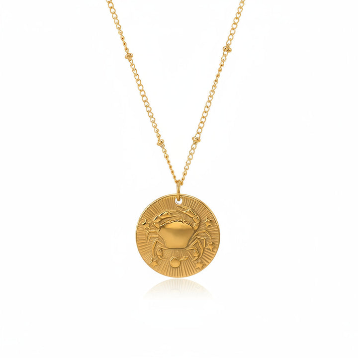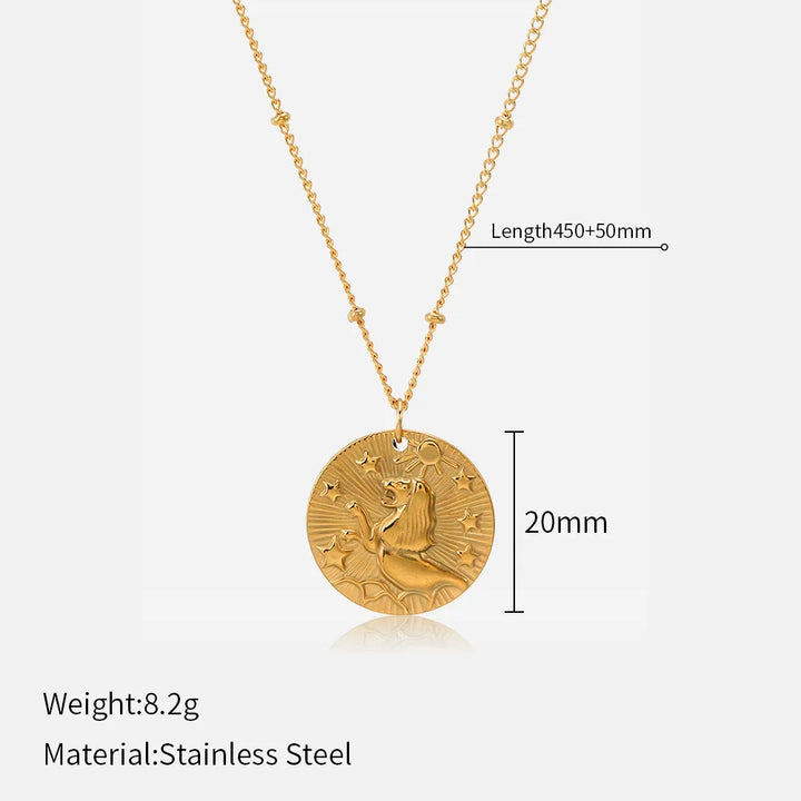 Golden Zodiac Constellation Coin Necklace: Vintage Moon Rituals Stainless Steel Amulet for Women