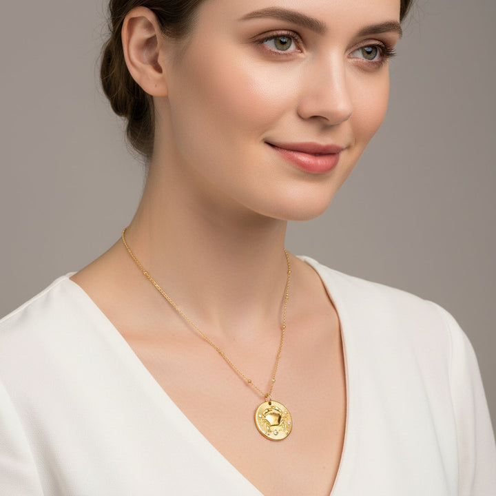 The intricate zodiac constellations are then painstakingly etched onto the pendant's surface, a process demanding the steadiest hands and the sharpest eyes. We believe in the power of human touch, the subtle imperfections that speak of authenticity and dedication. Our process involves small-batch gold plating, applied with precision to achieve a warm, enduring gleam that evokes the feeling of a cherished heirloom. Before any piece leaves our care, it undergoes rigorous quality checks. Each necklace is examined under the bright, unforgiving light of day, ensuring that the constellation is crisp, the plating is even, and the overall aesthetic is one of refined elegance and enduring quality. This commitment to bench craft and attentive finishing is what sets our creations apart, offering you a piece of jewelry that is both beautiful and deeply meaningful.
