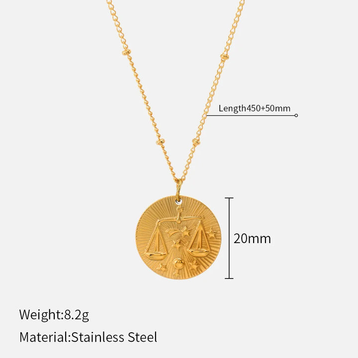 Embrace the celestial dance with our Golden Zodiac Constellation Coin Necklace. Inspired by ancient moon rituals and the enduring wisdom of the stars, this exquisite amulet is designed to be your personal touchstone, connecting you to the gentle rhythms of lunar cycles. Crafted from premium stainless steel with a warm, vintage finish, each constellation is a whispered reminder of your unique cosmic blueprint.