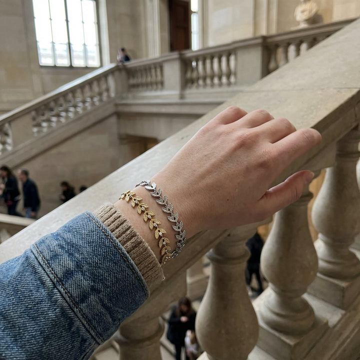 Our journey begins in the heart of a small, sun-drenched atelier nestled along the Azure Coast, a region renowned for its centuries-old tradition of artisanal metalwork. Here, skilled craftspeople, whose families have honed their techniques through generations, meticulously shape and polish each component of this bracelet. The stainless steel is selected for its inherent strength and hypoallergenic qualities, ensuring a piece that is as comfortable as it is enduring. Under the soft glow of natural light, our artisans employ time-honored methods, from the precise stamping of each delicate leaf motif to the careful integration of the interlocking links, creating a tactile experience that speaks of true craftsmanship.