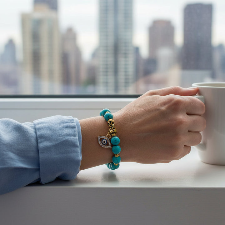 This artisanal bracelet is more than just adornment; it's a personal talisman. Slip it on as you prepare for rest, hold it gently during moments of reflection, or simply wear it throughout your day to carry its calming essence with you. Its handmade charm and the inherent beauty of natural turquoise make it a thoughtful gift for anyone seeking a touch of serenity and a renewed sense of well-being. Discover the quiet luxury of mindful adornment and allow this exquisite piece to support your journey to a more peaceful, relaxed you.
