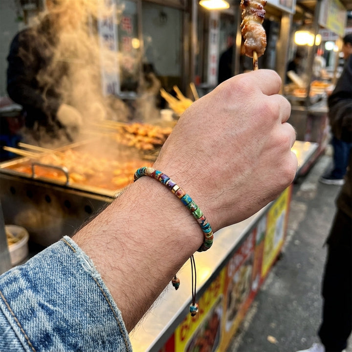 Let the beautiful, varied hues of these natural stones serve as a daily anchor for your aspirations. Wear it loosely on your wrist during moments of reflection, or layer it with other cherished pieces as a vibrant expression of your evolving spirit. As you tie the knot of this braided design, make a silent vow to yourself – a promise to pursue your passions with courage and to find the motivation that resides within. This bracelet is more than adornment; it's a tangible symbol of your beautiful, empowered self.