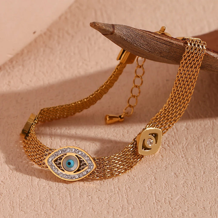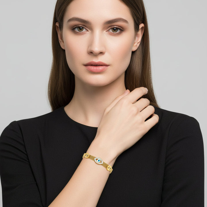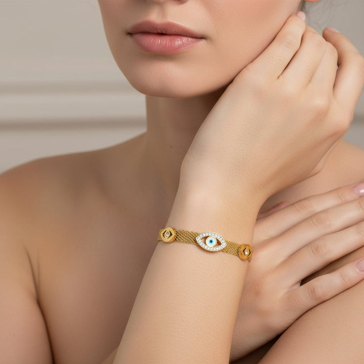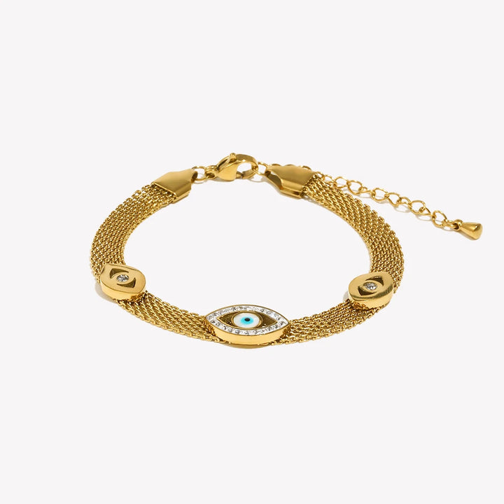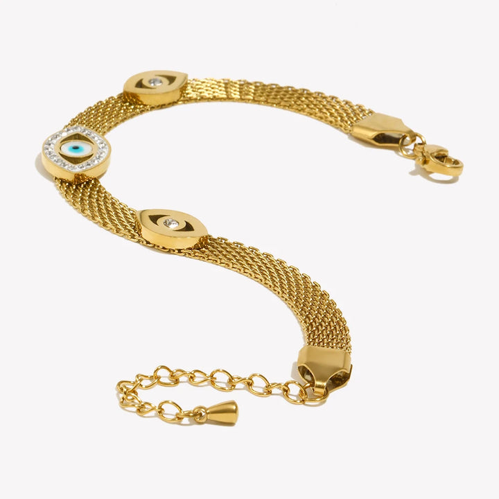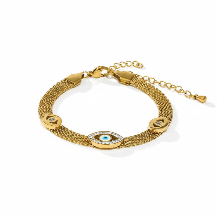 E.B.belle Abundant Wealth Three Eyes Gold Plated Mesh Chain Bracelet for Women