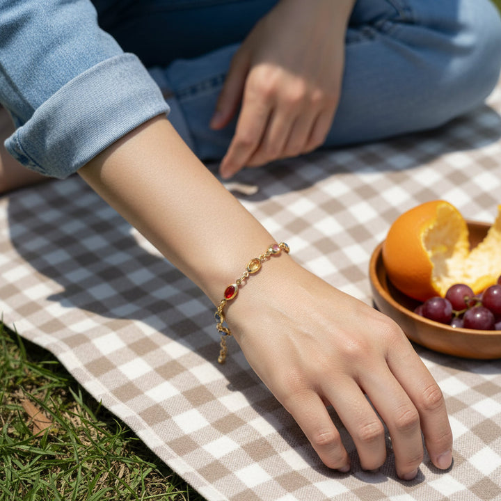 The 18K gold plating is applied in small, dedicated batches, a process that guarantees a rich, lasting luster and a feel of true luxury against the skin. Before any piece leaves our workshop, it undergoes a series of rigorous quality checks. Held under the soft glow of natural sunlight, each stone is examined for clarity, each setting for security, and the overall harmony of the design is affirmed. This dedication to detail, combined with our passion for creating pieces that resonate with positive energy, ensures that every bracelet is not just beautiful, but a vessel of intention and a testament to the enduring beauty of handcrafted artistry.