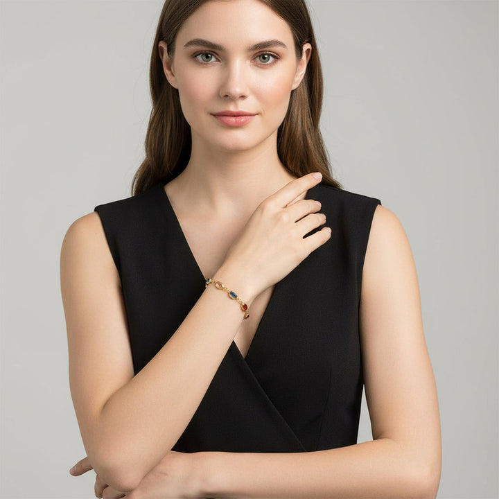Crafted for the modern muse who believes in manifesting her dreams, this bracelet is more than just an accessory; it's a tangible whisper of abundance and a beacon of good fortune. Each carefully selected crystal is cradled in the warm embrace of 18K gold plating, creating a symphony of light and intention. Designed to be a constant companion, it serves as a beautiful reminder to keep your aspirations in focus, drawing wealth and positive energy into your life with every glance. Whether you're stepping into a high-stakes meeting, celebrating a personal triumph at a glamorous party, or simply navigating the everyday, this bracelet imbues your spirit with confidence and a radiant allure, making it the perfect blend of trend-setting style and profound intention. It’s a piece designed to not only adorn your wrist but to elevate your entire aura, encouraging a mindset of limitless possibility and attracting the very essence of prosperity.