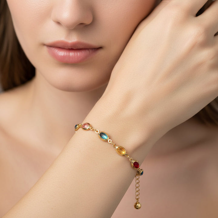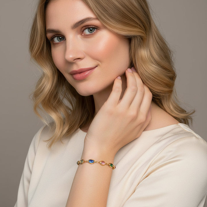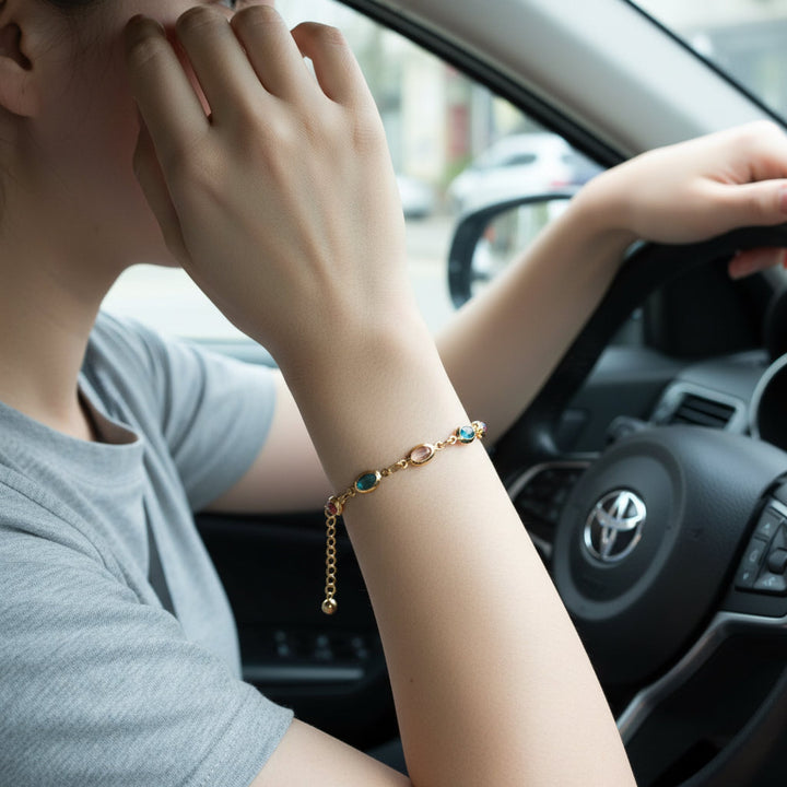 Embrace a future shimmering with prosperity and joy with our exquisite 18K Gold Plated Abundance Crystal Bracelet.