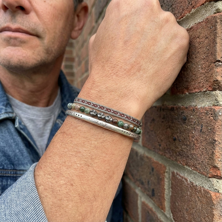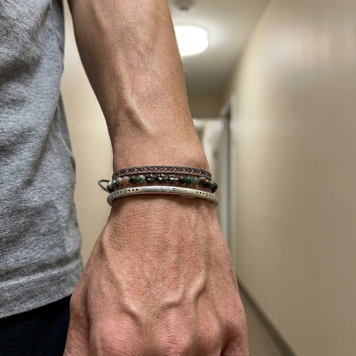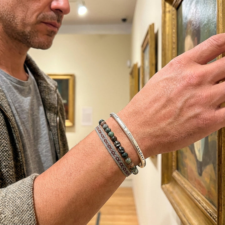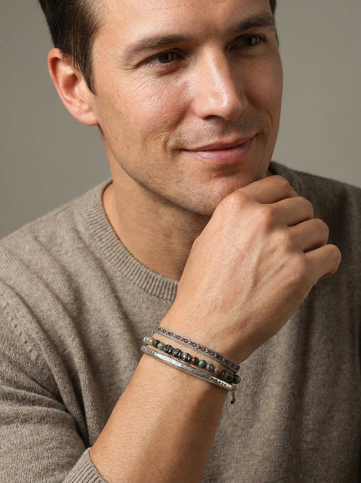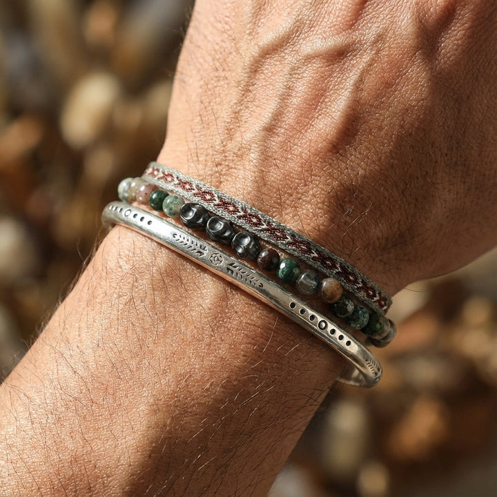 Our artisans hail from a secluded valley nestled high in the Himalayan foothills, a region steeped in ancient traditions of silversmithing and mindful craftsmanship. For generations, families have passed down the secrets of working with pure Tibetan silver, a metal believed to possess protective qualities and a deep connection to spiritual energies. Each bangle begins its life as raw, ethically sourced Tibetan silver, carefully melted and drawn into fine wires. These wires are then meticulously hand-woven by our master craftspeople, their skilled fingers moving with a practiced rhythm that has been honed over decades, creating the intricate rope pattern that forms the foundation of this piece. This is not mass production; this is a labor of love, undertaken in small batches within our sun-drenched atelier, where the crisp mountain air and the soft glow of natural light illuminate every detail.
