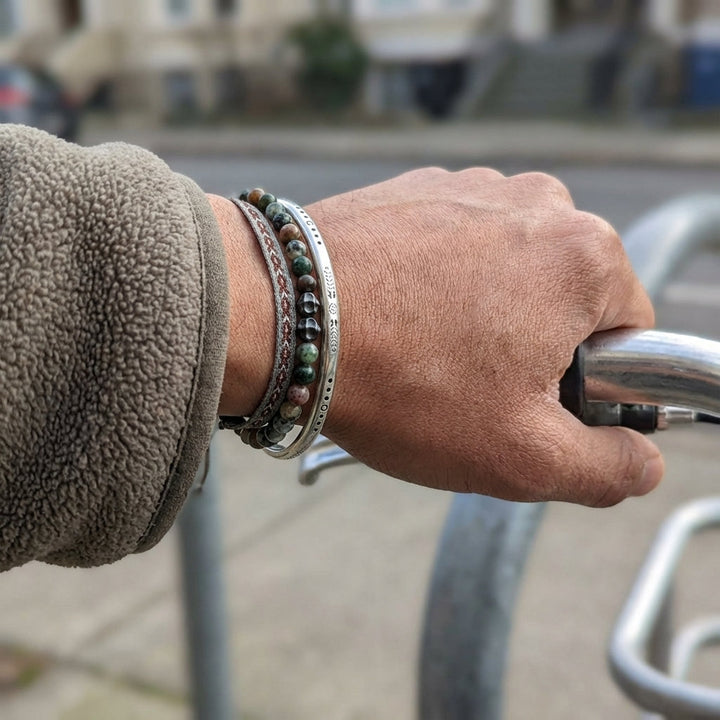 Embrace the gentle, luminous power of the moon with our Moon Rituals Bangle. Inspired by ancient celestial wisdom and crafted from exquisite Tibetan silver, this piece is designed to be a personal touchstone for your journey through life's natural rhythms. Each woven rope bangle is lovingly handmade, adorned with carefully selected lucky colored stones, chosen to resonate with your unique energy and aspirations. Wear it as a reminder to pause, reflect, and honor the ebb and flow of your own personal cycles, just as the moon guides the tides.