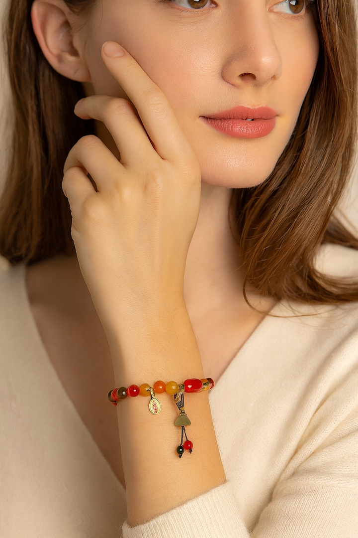 Aries (Mar 21 - Apr 19): Ignites leadership energy during social gatherings; the red agate beads fuel assertive communication.