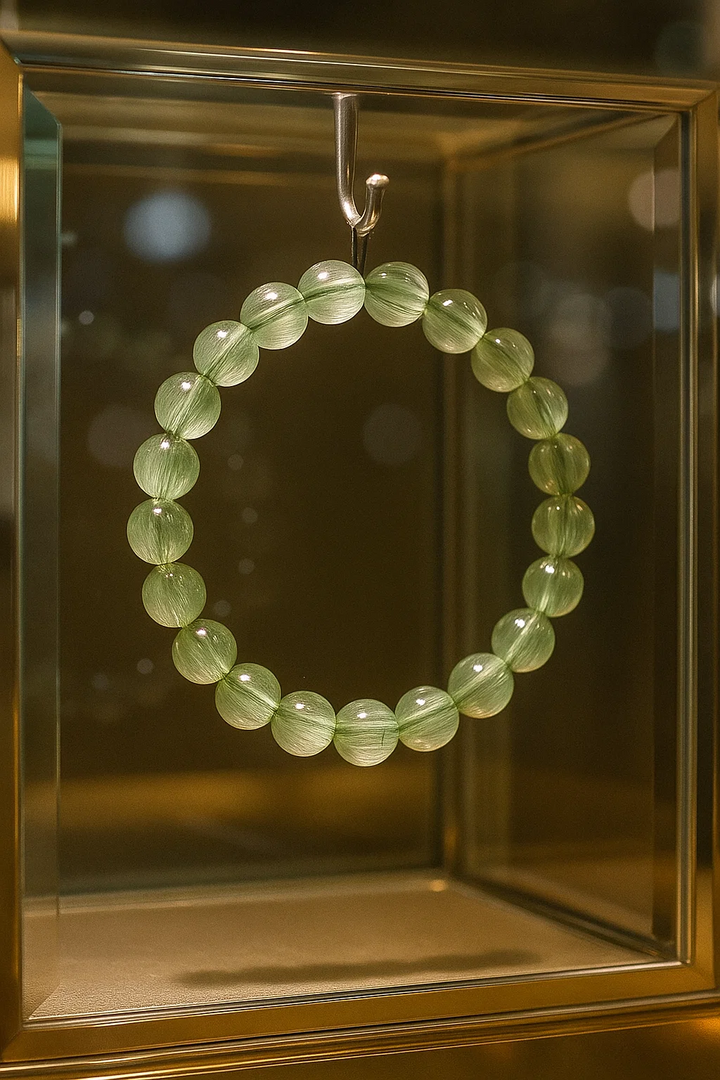 Masterfully crafted through ancient methods, this unisex bracelet combines the earthly majesty of green quartz crystals with the cosmic beauty of golden rutile threads. Available in six sizes (7MM-12MM), each bead is a miniature universe where nature’s geometry meets spiritual symbolism. Designed in the revered "Shunfa" style of Chinese artisanship, this piece doubles as a protective talisman and fashion statement, channeling prosperity while dissolving emotional blockages for those navigating modern stresses.