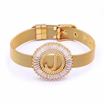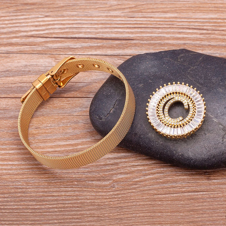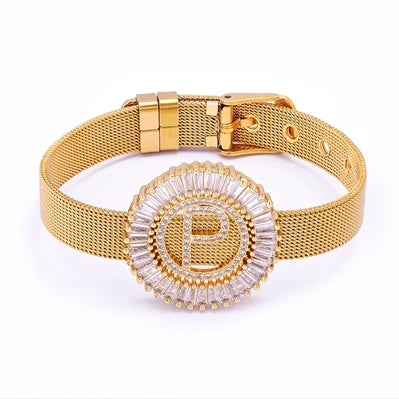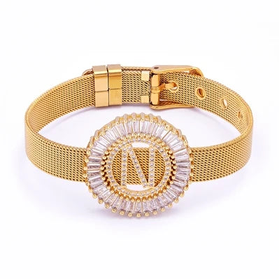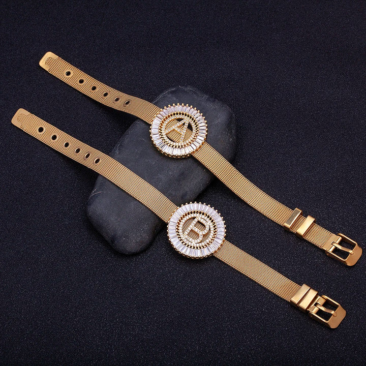 Abundant Wealth Micro Pave Zircon 26 Letter Name Bracelet - Luxury Stainless Steel Bangle Gift