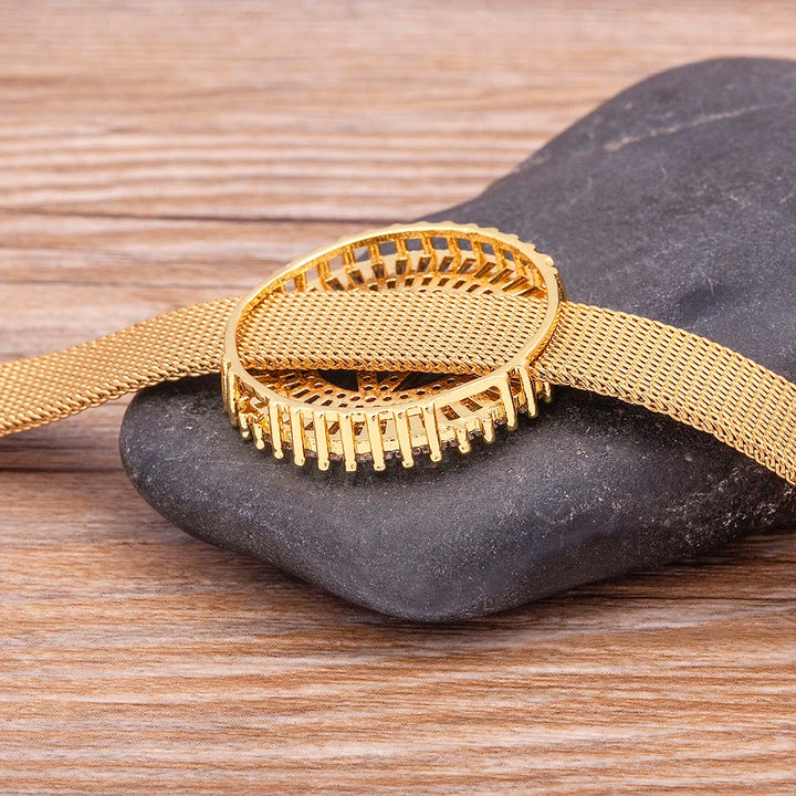 Crafted with meticulous detail, our Abundant Wealth bracelet is designed to be a personal emblem of your aspirations. Each micro-pave zircon shimmers with the promise of prosperity, a subtle yet potent reminder of the abundance you are cultivating in your life. Worn close to the skin, this luxury stainless steel bangle is more than just an accessory; it's a tangible expression of your inner drive and a gentle nudge towards manifesting your financial goals. Let its radiant glow inspire confidence and focus as you navigate your journey towards a richer, more fulfilling future.