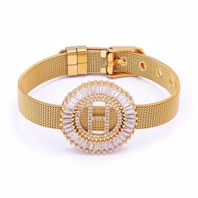 Crafted with the intention of attracting abundance and fostering a sense of enduring wealth, this bracelet is more than just an accessory; it's a personal talisman for your journey towards prosperity. Each element has been thoughtfully chosen and expertly assembled to resonate with the energy of good fortune. The foundation is a durable, lustrous stainless steel bangle, chosen for its strength and timeless appeal, reflecting the stability you seek in your financial endeavors. Adorning this elegant structure are meticulously hand-set micro pave cubic zirconia stones that sparkle with an inner fire, reminiscent of precious gems and the radiant glow of success. The customizable initial charm allows for a deeply personal connection, serving as a constant reminder of your unique path to abundance. This piece is designed to be worn daily, a subtle yet powerful affirmation of your goals, catching the light and drawing positive attention to your ambitions, making it a cherished companion on your quest for a life filled with wealth and fulfillment.