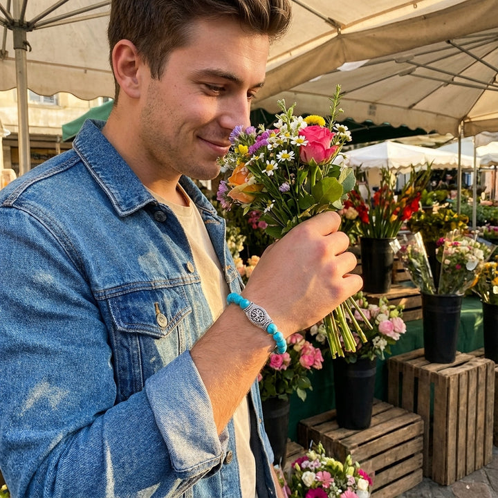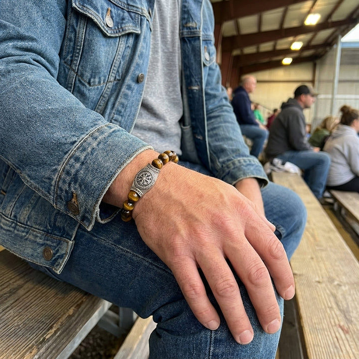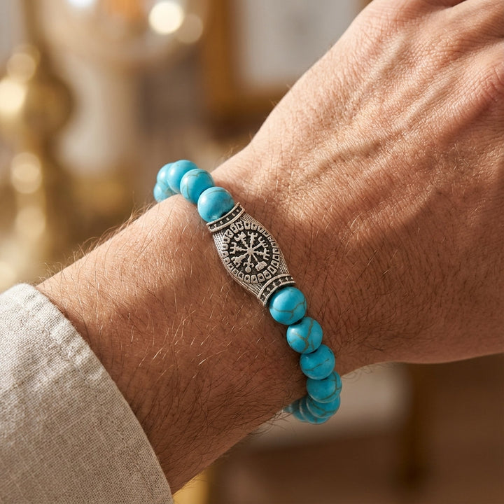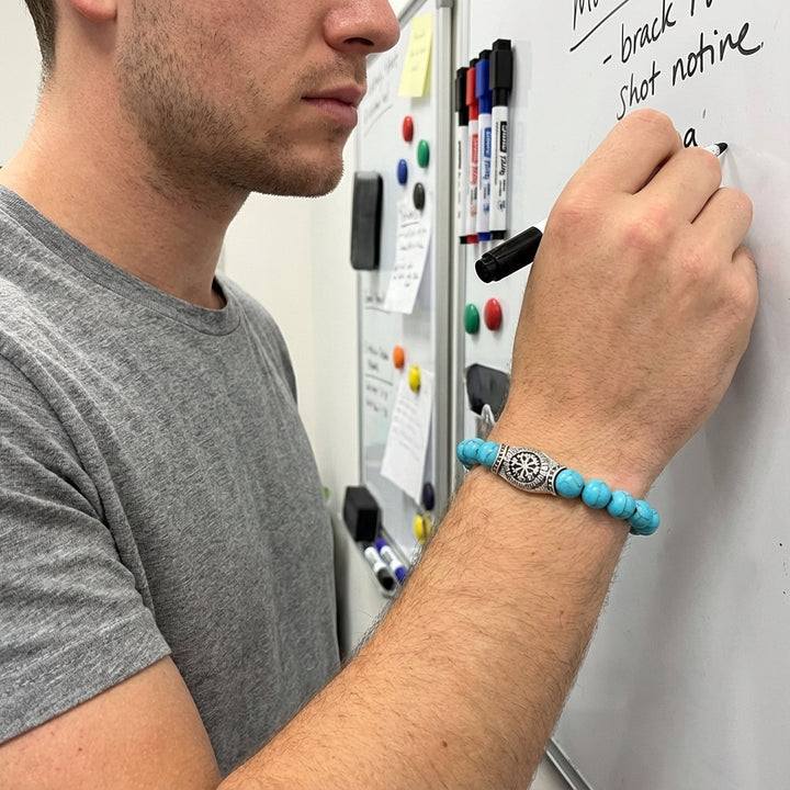 This distinguished men's beaded bracelet is more than an accessory; it is a tangible conduit for manifesting abundance and cultivating unwavering inner fortitude. Each bead, carefully selected for its intrinsic properties and striking beauty, is strung with intention, mirroring the ancient craftsmanship and resilient spirit of Viking lore. Designed for the modern man who values both aesthetic sophistication and meaningful adornment, this piece serves as a constant reminder of your inherent power and your capacity to attract wealth and success. The tactile experience of the smooth, polished stones against the skin, combined with the subtle, grounding presence of the alloy accents, creates a sensory connection to the earth's enduring energies. Wear it as a personal talisman, a silent promise to yourself to pursue your goals with courage and to welcome prosperity into every facet of your life, allowing it to become an integral part of your daily journey toward achievement and well-being. This bracelet is a testament to the belief that true wealth is cultivated from within, amplified by the natural energies that surround us and the conscious intentions we set forth.