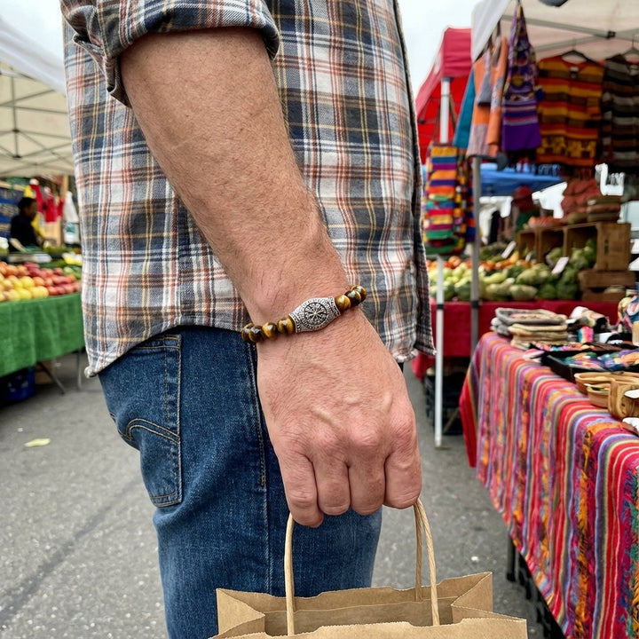 Noter Men's 8mm Abundance & Wealth Stone Beaded Bracelet | Viking Inspired Healing & Meditation Hand Accessory