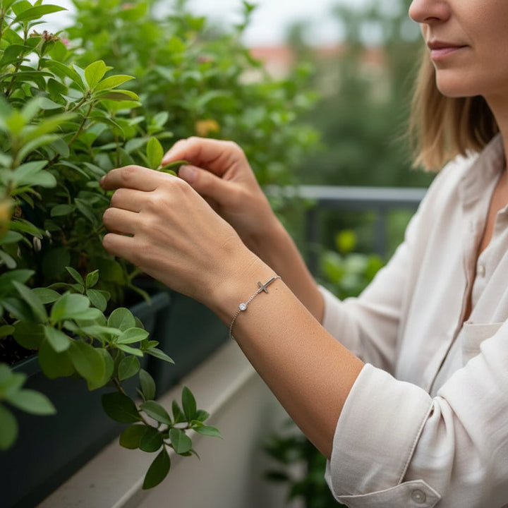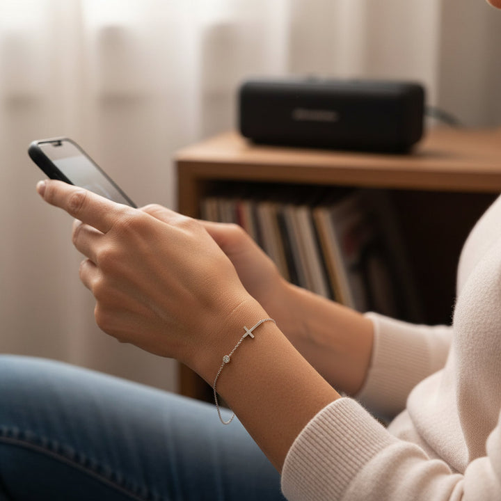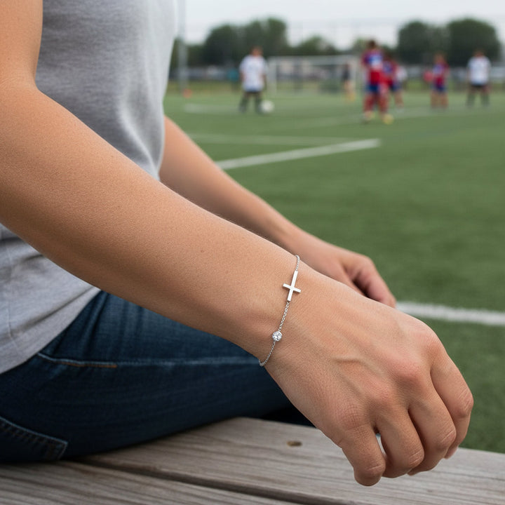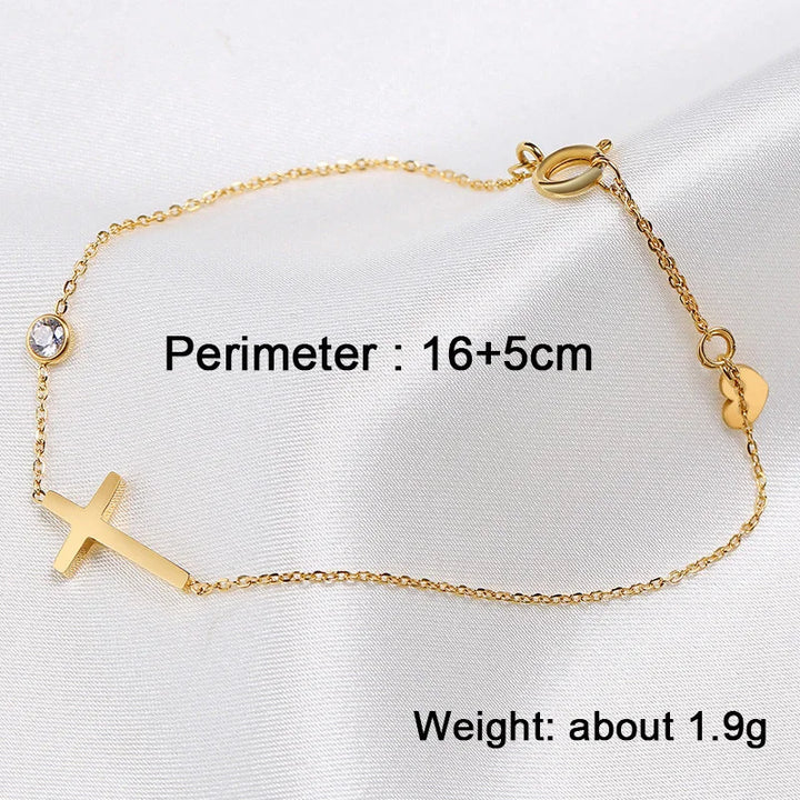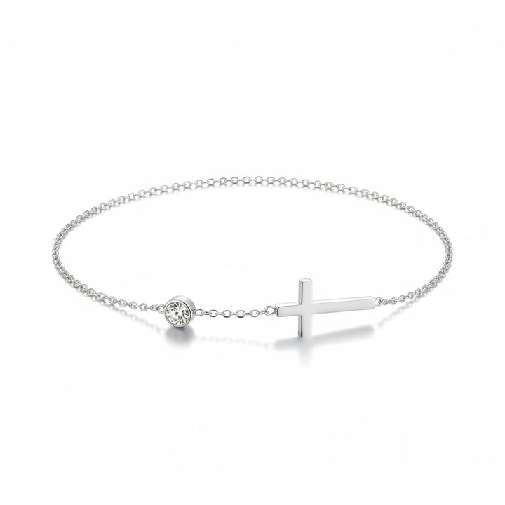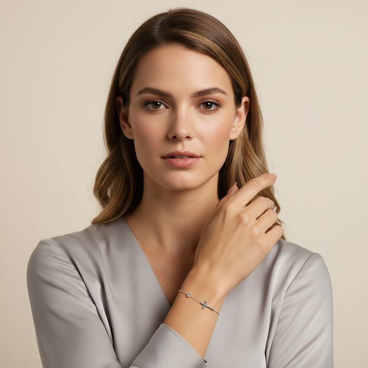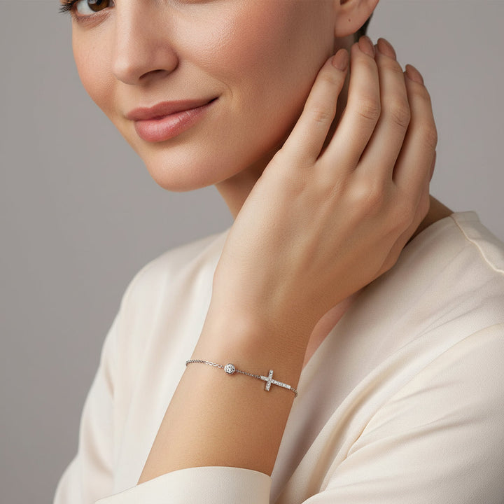 Elegant CZ Crystal Cross Bracelet for Women - Dainty Silver Chain Hand Jewelry