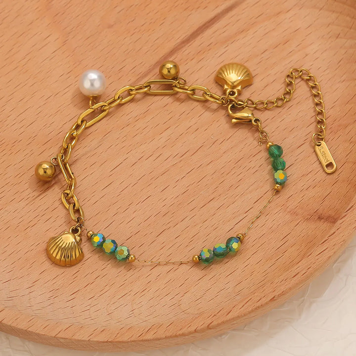 Feminine Healing Shell Pearl Bracelet: Y2K Beach Fashion, Trendy Ocean Gemstone Jewelry Gift