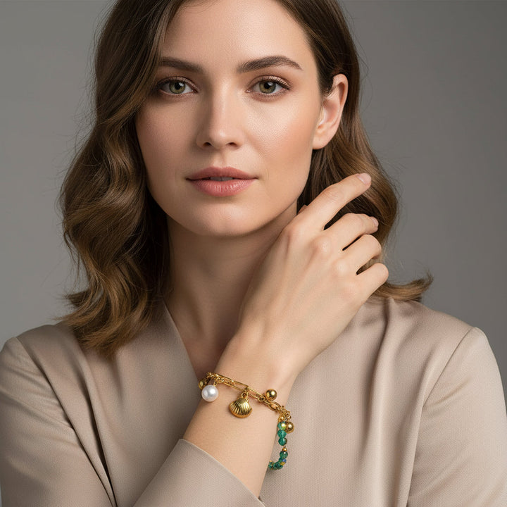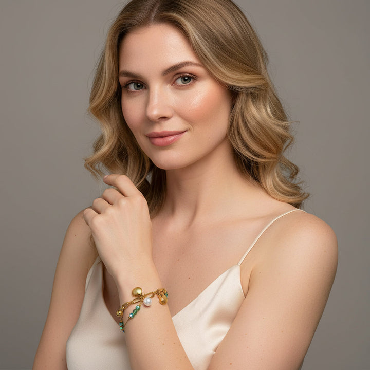 The shell pearls are carefully chosen for their lustrous sheen and organic beauty, each one possessing a subtle variation that speaks to its natural origin. These are then artfully combined with carefully selected ocean gemstones, their colors reminiscent of turquoise waters and coral reefs. Our artisans employ time-honored methods, including delicate hand-setting of gemstones and meticulous finishing touches, ensuring that the bracelet not only looks stunning but also feels exquisite against the skin. Each piece undergoes rigorous quality checks under natural light, a crucial step to guarantee the brilliance of the stones and the integrity of the setting. This dedication to detail, combined with the soulful artistry of our craftspeople, results in a piece that transcends mere adornment, becoming a cherished talisman of feminine power and oceanic serenity.