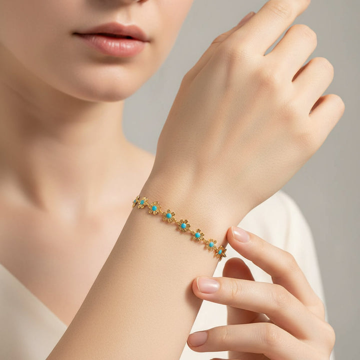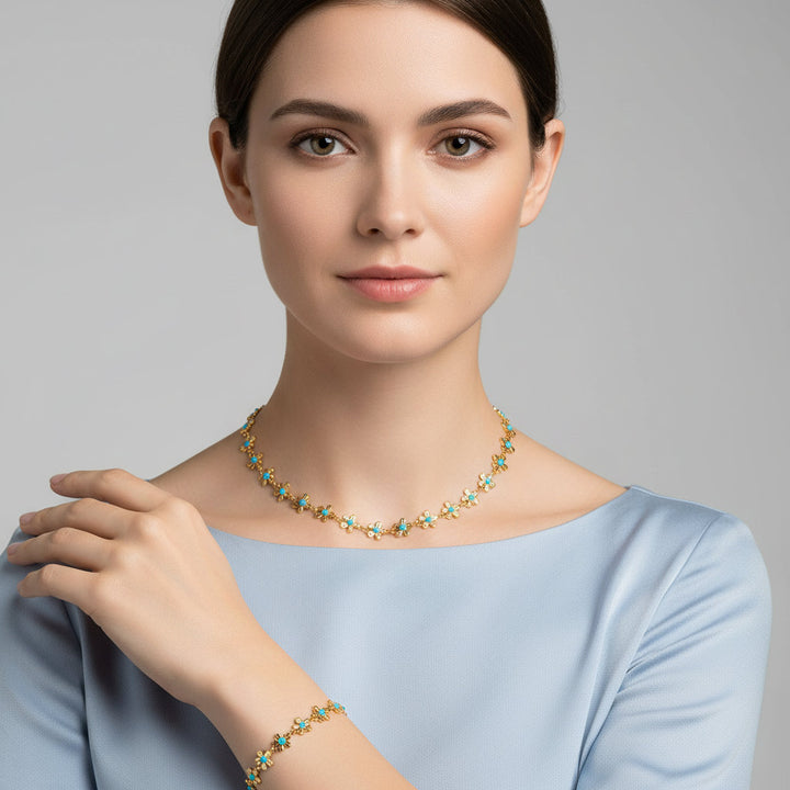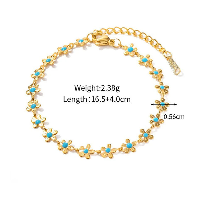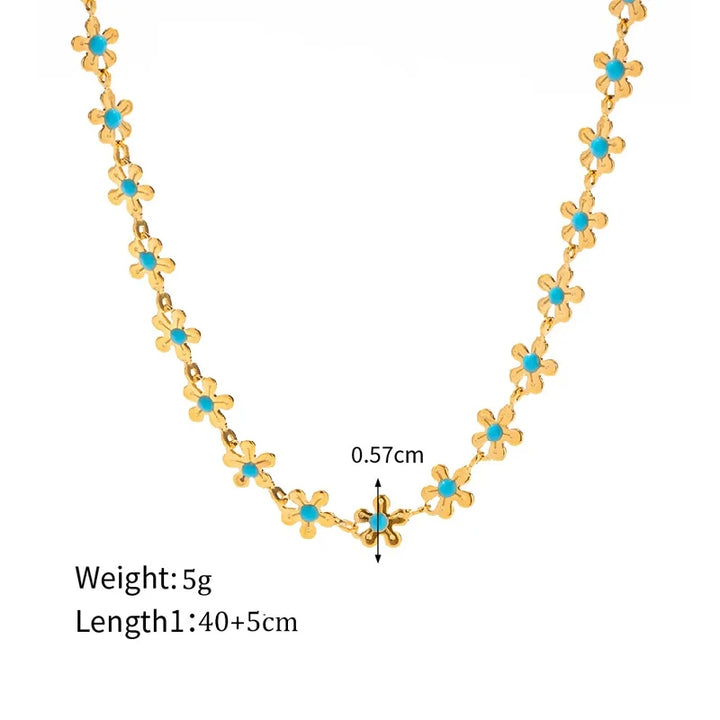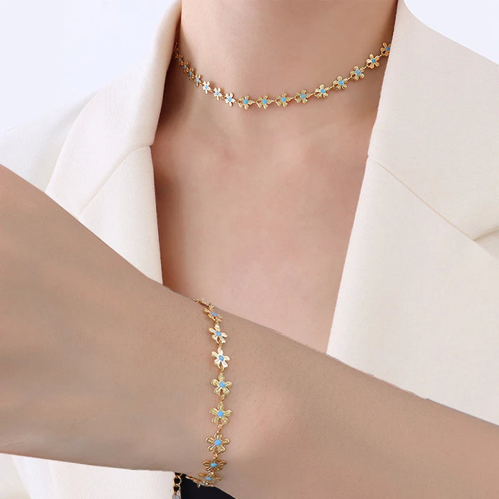 Elegant Bohemia Blue Flower Stainless Steel Necklace & Bracelet Set: Wisdom, Waterproof Gift for Her