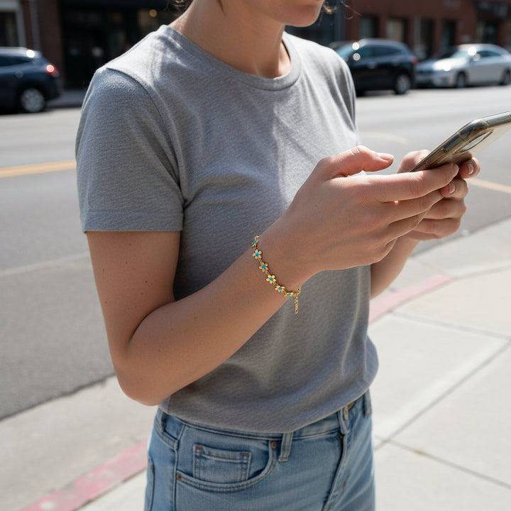 • Drip Oil Enamel: Captures vibrant, luminous color, bringing the delicate blue flower motif to life with a glossy finish.