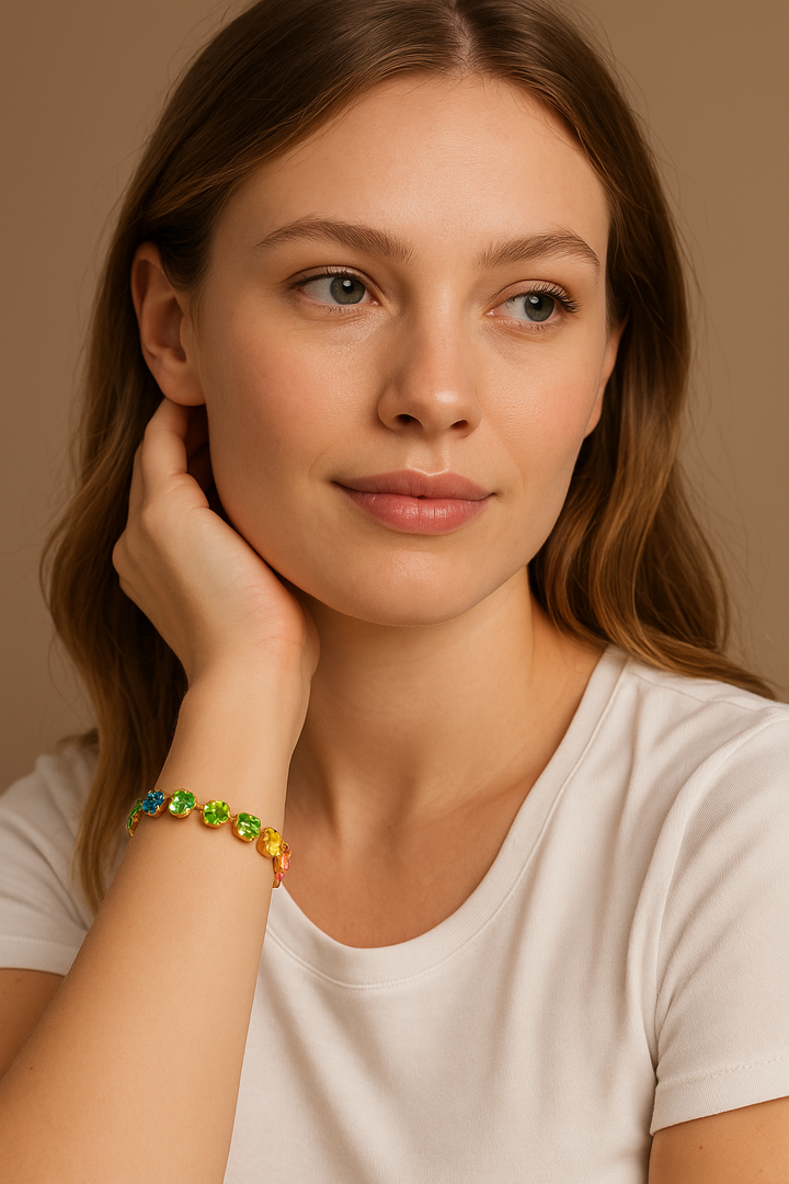 Adorn your wrist with a symphony of color and sparkle, a testament to timeless elegance and modern allure.