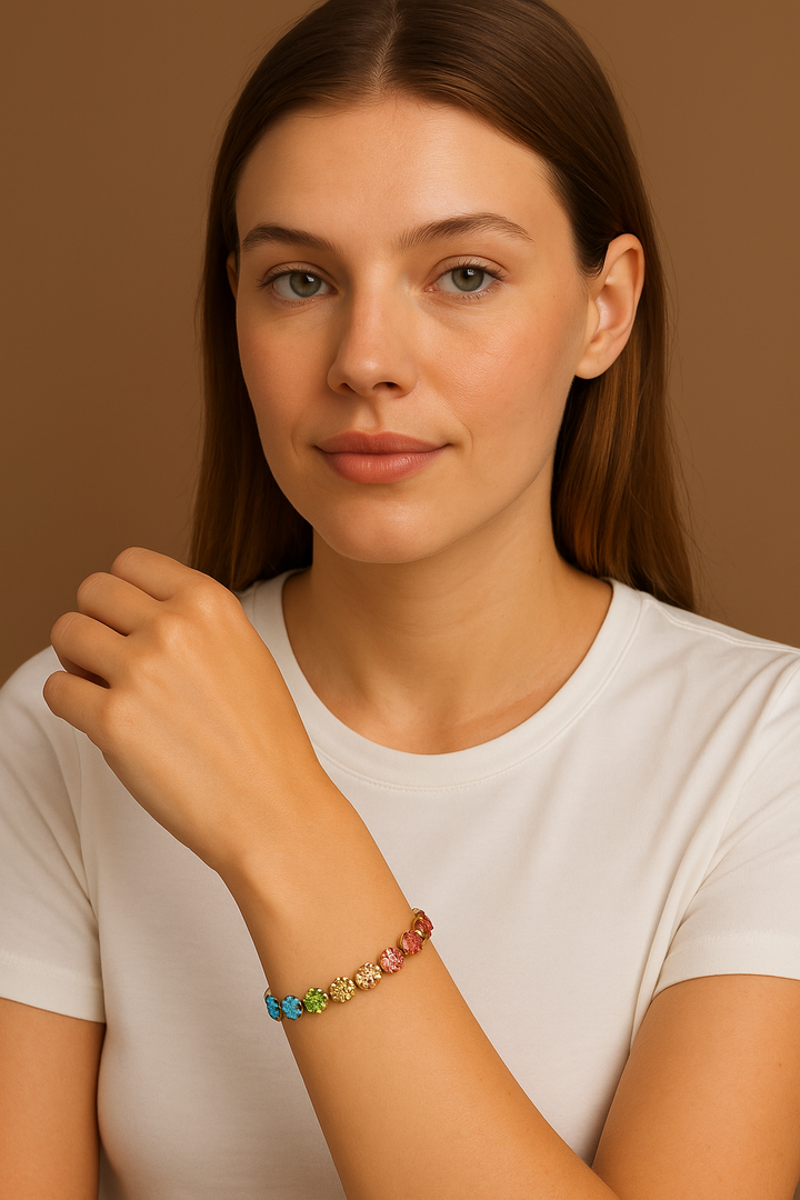 This exquisite Rainbow CZ Tennis Bracelet originates from a region celebrated for its longstanding tradition of fine jewelry craftsmanship and dedication to artisanal excellence. For generations, local artisans have passed down intricate techniques, blending heritage craftsmanship with a contemporary design sensibility. The brand embodies this legacy, combining timeless artistry with modern elegance to create pieces that speak to today’s refined tastes. Each bracelet is meticulously handmade by skilled craftspeople who infuse every step with care and expertise—from the precise setting of each cubic zirconia to the flawless polish of the gold-plated chain.